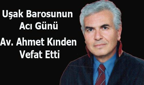 40 Yıldır Uşak barosuna kayıtlı olarak avukatlık yapan Ahmet kınden'in ölümü Uşak Barosunu Uşak Adliyesini ve tüm sevenlerini üzüntüye boğdu. Uzun süredir karaciğer rahatsızlığı nedniyle tedavi gören Ahmet Kınden tedavi gördüğü Çapa Tıp Fakültesinde bugün yaşamını yitirdi. Kınden'in yaklaşık 6 aydır tedavi gördüğü belirtildi.