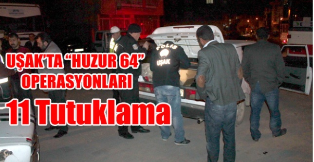 Uşak polisinin geçen hafta içerisinde yaptığı Huzur 64 Operasyonlarında haklarında yakalama kararı bulunan 28 şüpheliden 11'i tutuklanırken, çok sayıda taşınması yasak alet ele geçirdi.
