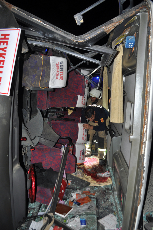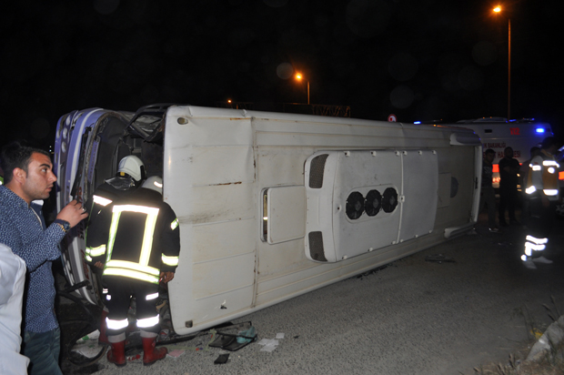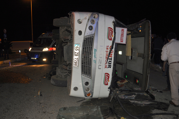Edinilen bilgilye göre İzmir istikametinden Ankara'ya doğru seyir halindeki ve sürücüsü belirlenemeyen 07 GHU 69 plakalı hafif ticari araç, Karmez Kavşağı'ından yolun karşısına geçmek isteyen Yıldıray Altun yönetimindeki 45 ZB 7288 plakalı işçi servisine çarptı.