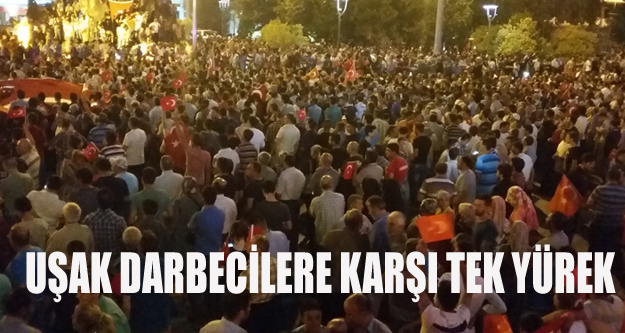 Akşam saatlerinde bir grup TSK mensubunun başlattığı askeri darbeye karşı, Uşak halkı tek yürek oldu. Uşak Belediye Başkanı Nurullah Cahan ve AK Parti İl Başkanı Servet Kuş, halkı darbeye karşı koymak için kent meydanına davet etti.