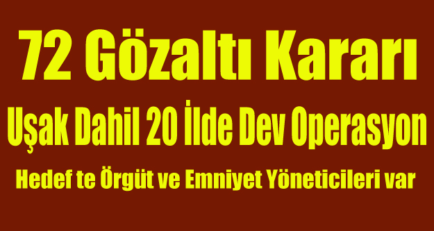 Aralarında Uşak'ın da bulunduğu 13 ilde yapılan birinci operasyonda 17'si kadın 40 şüpheli hakkında gözaltı kararı çıkarıldı. Yine 7 İlde Emniyet yapılanmasına ilişkin 32 kişi hakkında yakalama kararı çıkarıldı.