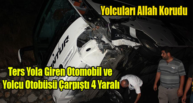 Uşak'ta ters yola giren otomobilin yol açtığı trafik kazasında yolcu otobüsü ile otomobilin çarpışması sonucu 1'i ağır 4 kişi yaralandı.