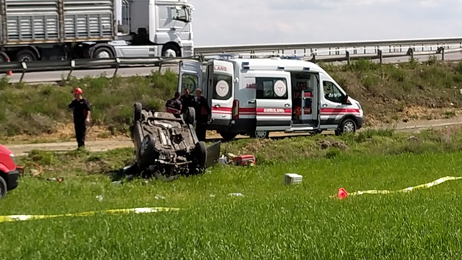 Uşak’ta meydana gelen trafik kazasında yoldan çıkarak takla atan araç sürücüsü kadın hayatını kaybederken yabancı uyruklu kocası kazayı hafif sıyırıklarla atlattı.
