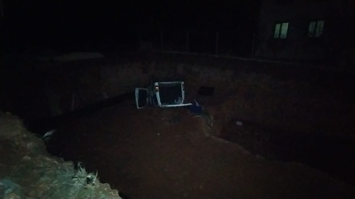 Uşak'ta ticari araç çukura düştü, sürücü yaralandı