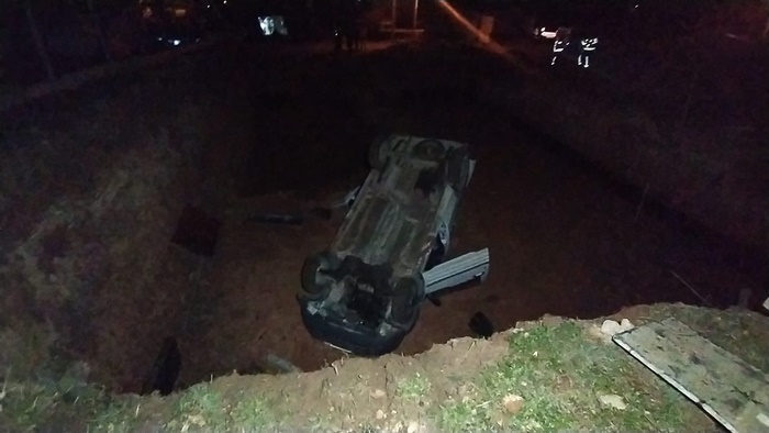 Uşak'ta hafif ticari aracın yol kenarındaki çukura düşmesi sonucu meydana gelen kazada sürücü yaralandı.