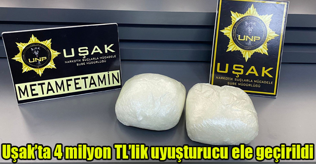 Uşak’ta piyasa değeri yaklaşık 4 milyon TL’ye yakın olan 2 kilogram metamfetamin yakalanırken bir kişi de çıkarıldığı mahkemece tutuklandı.
