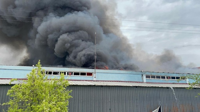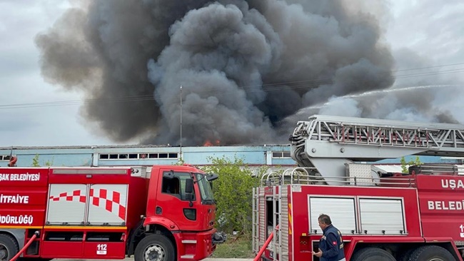 Uşak’ta Tekinler battaniye üretim fabrikasında çıkan yangına ekiplerin müdahalesi bütün hızıyla devam ediyor.