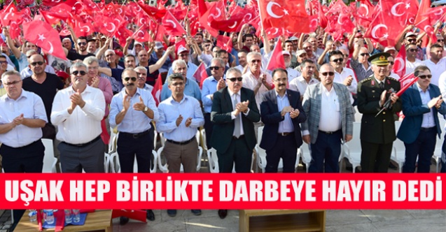 15 Temmuz Şehitler Meydanındaki Demokrasi ve Şehitler Mitingine Vali Ahmet Okur eşi Hatice Nur Okur ile birlikte katılırken, Uşak milletvekilleri Alim Tunç, Mehmet Altay, Özkan Yalım, Garnizon Komutanı Albay Nedim Selbisu, Uşak Belediye Başkanı Nurullah Cahan, vali yardımcıları, kaymakamlar, kurum ve kuruluş müdürleri, siyasi parti başkanları, sivil toplum teşkilatlarının temsilcileri ve binlerce Uşaklı vatandaş katıldı. İstanbul’dan canlı yayınlanan ve yaklaşık 4 saat süren program dev ekranlardan izlendi.