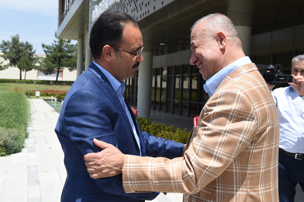 Uşak Belediye Başkanı Nurullah Cahan, yeni seçilen UOSB yönetimine iade-i ziyarette bulundu. Başkan Cahan’ın ziyaretinde Belediye Başkan Yardımcısı Hüseyin Ufuk Uğur’da bulundu. Cahan’ı UOSB Yönetim Kurulu Başkanı Halil Ağaoğlu karşılarken, sanayinin daha iyi yerlere gelmesi adına iş birliği yapılması yönünde karar çıktı.