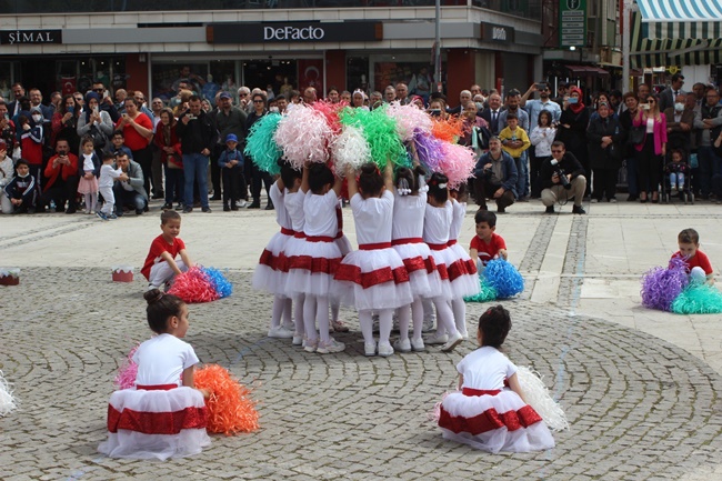Uşak Valisi Funda Kocabıyık ve Uşak Belediye Başkanı Mehmet Çakın, törene katılan öğrenci, öğretmen ve vatandaşların bayramını kutlamasının ardından törenlere geçildi. Okunan şiirler ve miniklerin sunduğu gösteriler ve halk oyunları izleyicilerden büyük alkış aldı.
