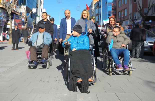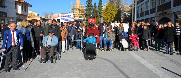 Uşak Belediyesi önünde toplanan engelliler ve aileleri, İsmet Paşa caddesi üzerinden Cumhuriyet Meydanı'na kadar yürüdü.