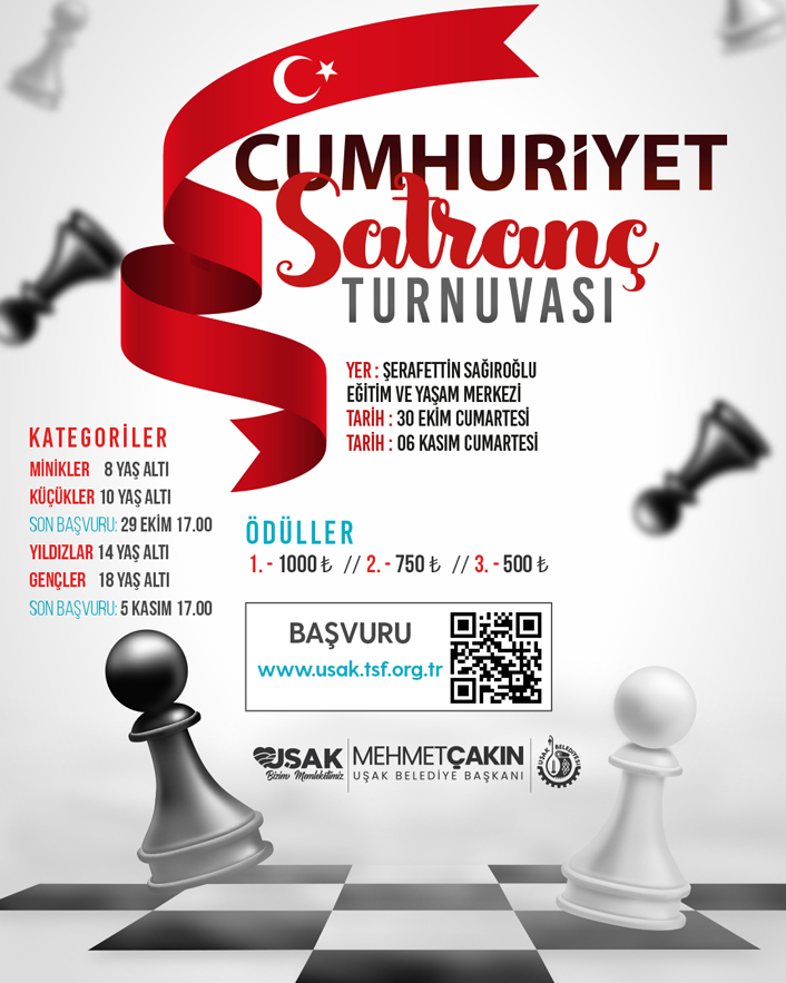 Başvuruların “usak.tsf.org.tr” adresi üzerinden online olarak alınacağı turnuvada birinciler 1000 TL, ikinciler 750 TL, üçüncüler ise 500 TL para ödülü kazanacak.