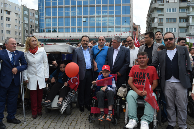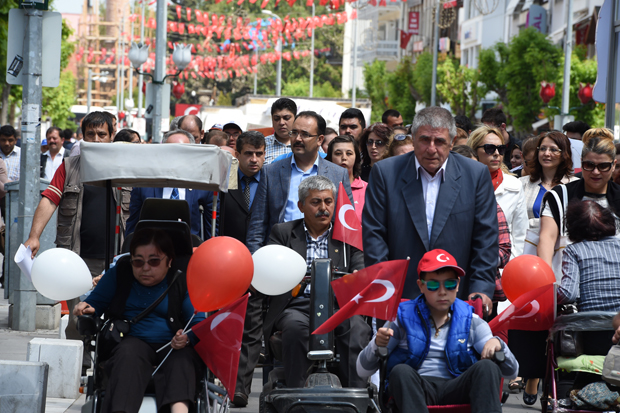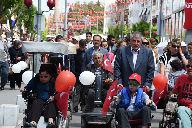 Burada bir açıklama yapan Belediye Başkanı Nurullah Cahan, “Engellerin kalmadığı, sıkıntıların sona erdiği bir Uşak için çalışıyoruz” dedi. Sıkıntıları engelli haklarını koruyan derneklerle ortak akılla çözdüklerine dikkat çeken Cahan, “Bugün Engelliler Haftası nedeniyle güzel bir kortej yaptık. Engelli derneklerimizle sürekli birlik ve beraberlik içindeyiz. Bu birlik sayesinde engelli kardeşlerimizin sıkıntılarını ortak akıl ile aşmaktayız. Belediyemiz yol yapım çalışmalarından yaptığımız tüm projelere kadar engellilerin rahat olmasını gözeten bir yapıda çalışmalarını yapmaktadır. Onların hayatlarını kolaylaştırmak için çaba veriyoruz. Engellilerimizin taleplerini de en uygun şekilde değerlendiriyoruz. Önümüzdeki süreçte de engellilerimizin hayatlarına olumlu etki edecek projelerimiz var. Bu projeleri de engelli haklarını koruyan derneklerimizle birlikte yapacağız” dedi.
