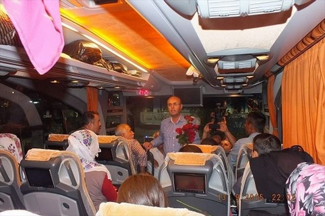 Kırşehir’de Doğuya Giden Otobüs Yolcularına Çikolata İkram Edilip Çiçek Verildi