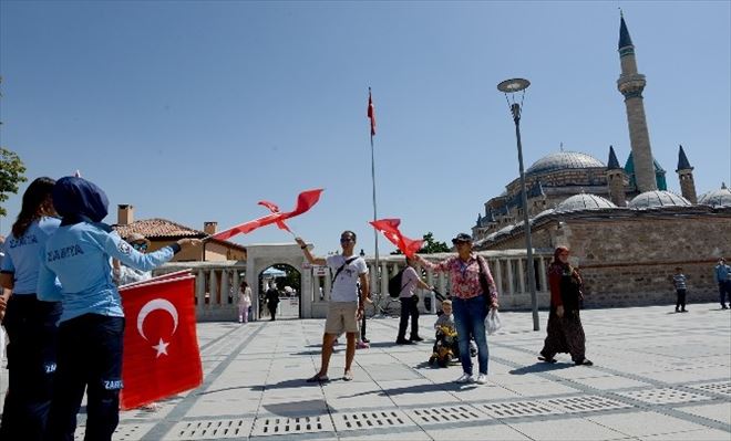 Konya Büyükşehir Belediyesi, Konya’da oynanacak Letonya ve Hollanda maçları öncesi Milli Takıma destek olmak ve ülkede yaşanan sıkıntılı süreçte insanlara moral vermek amacıyla Türk Bayrağı dağıttı.