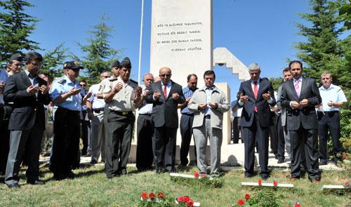 Şeker Evleri Mezarlığında bulunan garnizon ve polis şehitliğindeki ziyarette Vali Erden ve beraberindekiler şehit yakınlarına sabır diledi. Ziyarette İl Müftüsü Fuat Altıntaş dua ederek şehit yakınlarına başsağlığı diledi.
