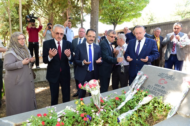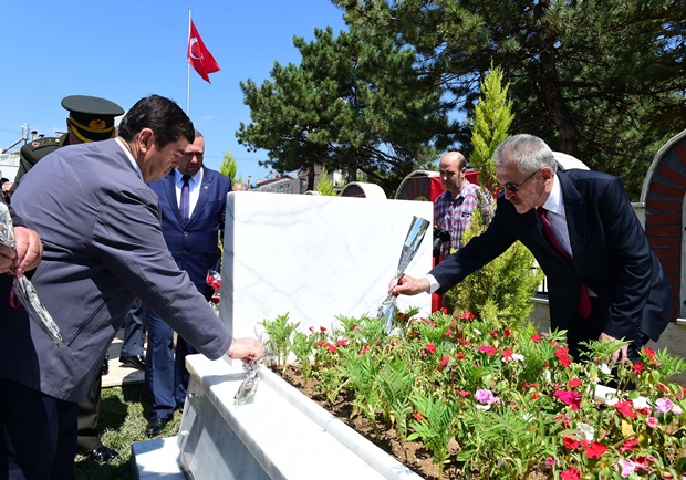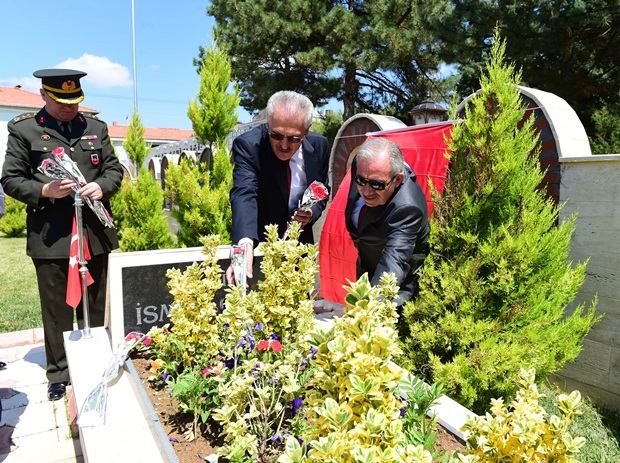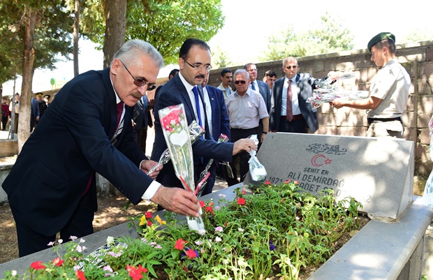 Şekerevleri Mezarlığında bulunan Uşak Şehitliğinde Kur'an-ı Kerim Tilaveti’nin okunmasının ardından, Vali Vekili Gürsoy ve protokol üyeleri şehitlerin mezarlarını tek tek dolaşarak karanfil bırakıp dua etti.