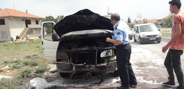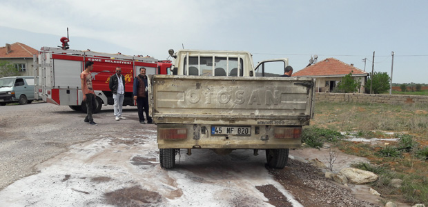 Edinilen bilgiye göre, Saraycık Köyü yakınlarında seyir halindeki Kenan Kılınç (37) idaresindeki 45 NF 820 plakalı kamyonetin motor kısmı henüz belirlenemeyen bir nedenle alev aldı.