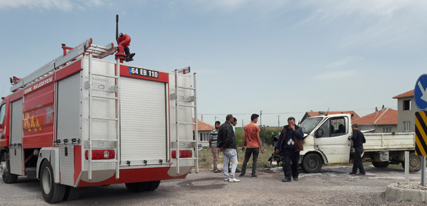 Uşak'ın Eşme ilçesinde, seyir halindeki bir kamyonette yangın çıktı.