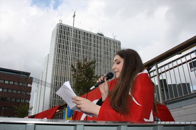 Stockholm’deki Segeltorg Meydanı’nda düzenlenen Şehitleri Anma ve Teröre Hayır Mitingi’ne yaklaşık 2 bin kişi katıldı. İstiklal Marşı’nın okunmasıyla başlayan miting şehit askerlerimizin ve polislerimizin isimlerinin okunmasıyla devam etti. İsveç Avrasya Hareketi ve Ülkü Ocakları organizasyonu ile hazırlanan mitinge İsveç Türk İşçi Dernekleri Federasyonu, İsveç Türk Kadınlar Federasyonu, UETD İsveç Uygur Maarif Derneği ve Irak Türkmenleri katıldı. İsveç Avrasya Hareketi yönetim kurulu üyelerinden Deniz Karaca ve Ayla Löfvin ortak olarak yaptıkları açıklamalarda, “Emperyalist güçlerin maşası PKK canileri masum insanlara en çok da Kürt kökenli vatandaşlarımıza saldırıyor. Asker, polis, öğretmen ve sağlık personelimize kalleşçe saldırıyor, şehit ediyor. Yüce Allah’tan onlara rahmet diliyoruz. Geride kalan gazilerimize sağlık ve şifa diliyoruz” dediler.