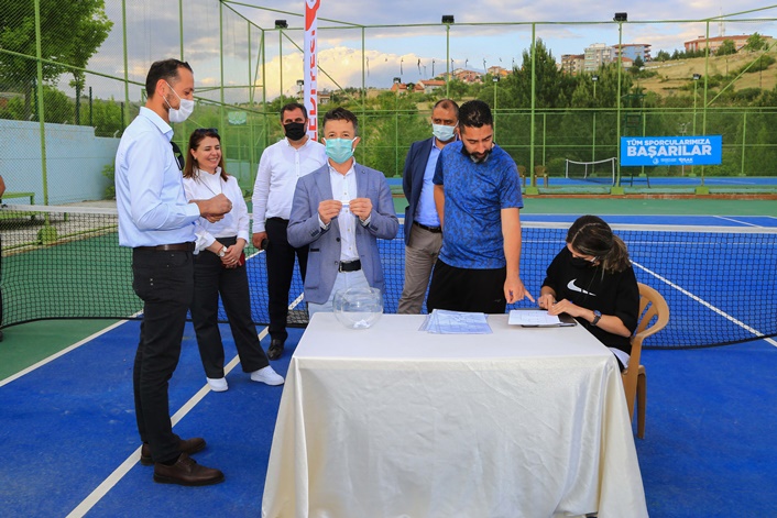 Geleneksel hale getirilen ve her yıl birbirinden çekişmeli mücadelelere ev sahipliği yapan Uşak Belediyesi Tenis Turnuvası kura çekiminin ardından Uşak Belediye Başkan Yardımcısı Zeynep Ceylaner’in ilk servis atışıyla başladı.
