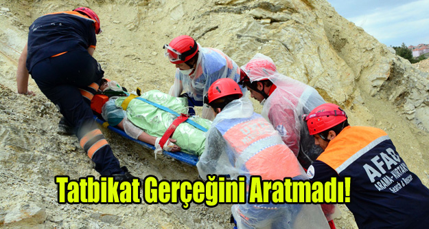Ulusal Medikal Kurtarma Ekipleri (UMKE) tarafından, Uşak Afet ve Acil Durum Müdürlüğü (AFAD) ekiplerinin katılımıyla Kaşbelen köyünde bulunan eski taş ocağında gerçekleştirilen tatbikatta, senaryo gereği dinamit patlamasında taşların altında kalan kazazedelere müdahale edildi.