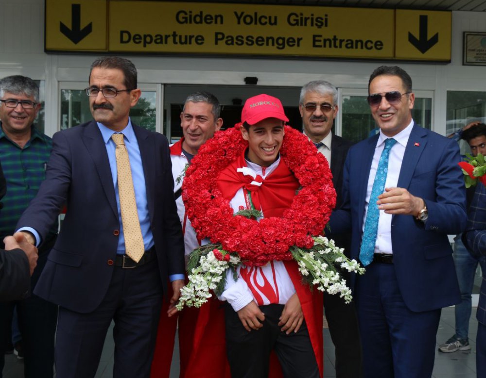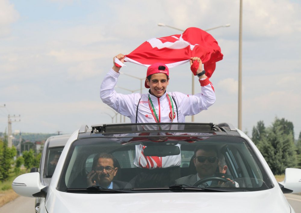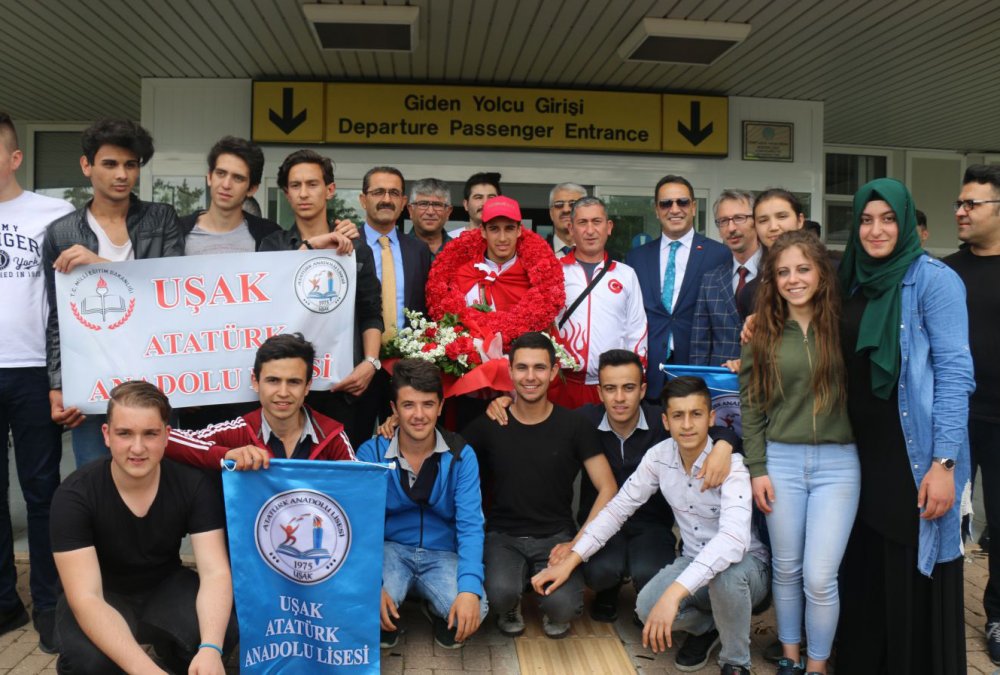 Uşak Atatürk Lisesi öğrencisi milli atlet Mehmet Çelik öğle saatlerinde kara yoluyla kente gelirken,Gençlik Hizmetleri ve Spor İl Müdürü Şahin Mercan, Uşak Milli Eğitim Müdürü Bülent Şahin ve beraberindekiler tarafından Uşak Havaalanı'nda karşılandı.