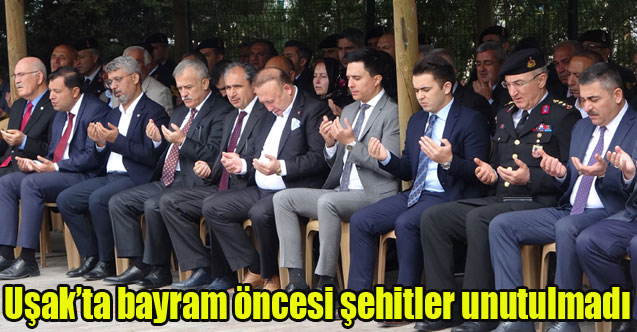 Uşak protokolü, Ramazan Bayramı öncesi gerçekleştirdiği ziyarette, şehitleri mezarları başında anarak dua etti.