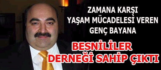Bütün bu sevindirici gelişmeler yaşanırken Şehir dışında olan ve hasta bayanın raporları eline ulaşan Besnililer Derneği Başkanı Fahri Polat Bu sabah telefonlara arayarak Besnililer Derneği olarak genç kadının bütün masraflarını karşılayacaklarını bildirdi. Bu haber bizi çok mutlu etti. Haberi genç kadına iletip Fahri bey’in cep telefonunu vererek görevimizi yaptık.