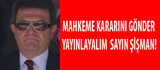 MAHKEME KARARINI GÖNDER YAYINLAYALIM SAYIN ŞİŞMAN!