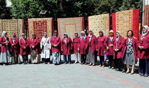 Uşak Belediyesi tarafından restore edilerek hizmete açılan Dokur Evi’nde kurulan halı dokuma atölyesinde dokunan el halıları görücüye çıktı.Dokur Evi’nde açılan kurslara katılan kursiyerlerin dokuduğu el halıları sergisi vatandaşlardan yoğun ilgi gördü. Belediye meydanındaki serginin açılışını Uşak Belediye Başkanı Ali Erdoğan, İl Milli Eğitim Müdürü Ömer Bulut, Emniyet Müdürü Şammaz Demirtaş, İl Defterdarı Abdullah Kırım ve Belediye Meclis Üyeleri gerçekleştirdi. Mahalli sanatçı Şaban Er’in açılış öncesi verdiği mini konser sergi alanındaki vatandaşları sevindirirken Ayna Halk Dansları Gösteri Ekibinin yöresel oyunları ilgiyle izlendi. Başkan Ali Erdoğan; el emeği göz nuru halıların sergilenmesinin öneminde değinerek, “Halı sadece bir eşya değil, aynı zamanda kadınlarımızın duygusunu, ilmek sayesinde halıya işleme sanatıdır” dedi.Uşak’ta çok önemli bir yer tutan halı dokuma sanatını geliştirmek istediklerini de belirten Ali Erdoğan, Dokur Evi’ndeki kursların devam edeceğini kaydetti. İŞKUR ile yapılan protokoller çerçevesinde açılan kurslara katılan ev hanımlarının hem ev ekonomisine katkı sağladığını hem de halı dokumacılığını öğrendiğini belirten Erdoğan, “Halıların bir metrekaresinde 89.600 ilmek var. Biz bu halıları piyasa fiyatlarının altında satışa çıkarıyoruz. Böylece kursiyerlerimiz gelir elde edecek. Uşak’ın en değerli kültürel mirasının yeniden hayat bulmasında büyük emeği geçen kursiyerlerimize bir kez daha teşekkür ediyoruz” dedi.Konuşmaların ardından kurslarda başarı elde eden kursiyerlere sertifikaları verildi. Sergide Madalyon, Yıldızlı, Kuşlu, Çintemani ve Saray motifli modeller yer alıyor.El dokuması halılar sergisi Atatürk Kültür Merkezi’ne taşınarak 25 Haziran tarihine kadar ziyarete açık olacak. Kursiyerlerin dokuduğu sergideki halılar ise vatandaşlara metrekaresi 380 TL’den satılacak.