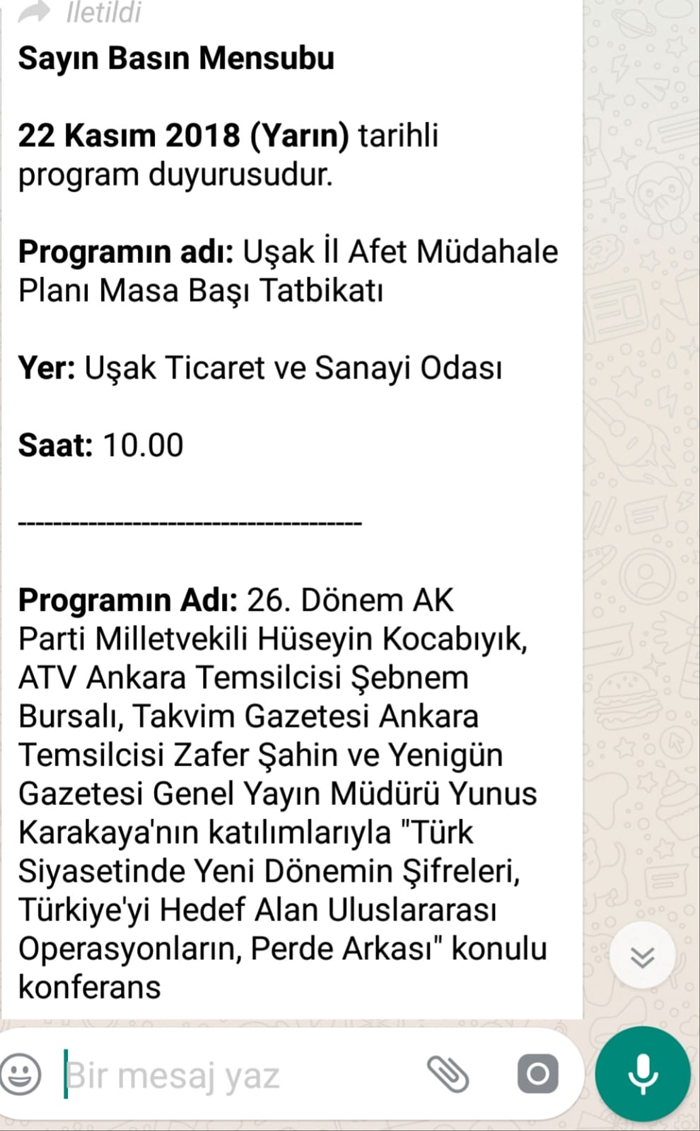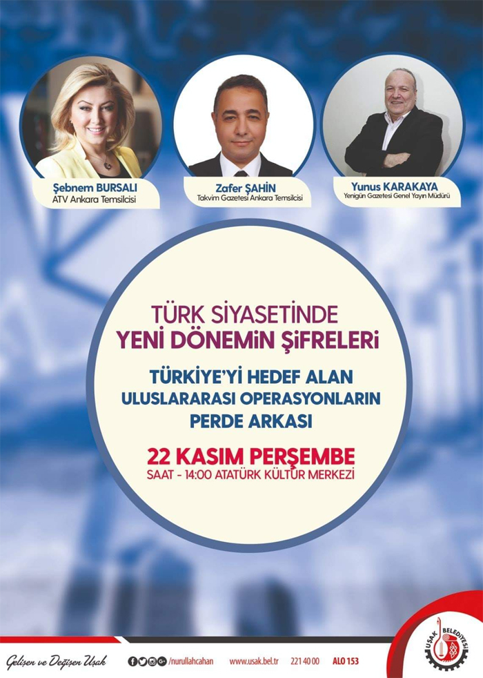 Yeni Asır Gazetesi Köşe yazarı Nurullah Cahan tekrar aday olacak diye köşe yazısı yazıyor, Yeni Asır Gazetesi grubundan ATV Ankara Temsilcisi Şebnem Bursalı, Uşak’ konferansa geliyor, Yeni Vali Funda Kocabıyık’ın eşi konferansa konuşmacı olarak katılıyor sponsor Uşak Belediyesi..
