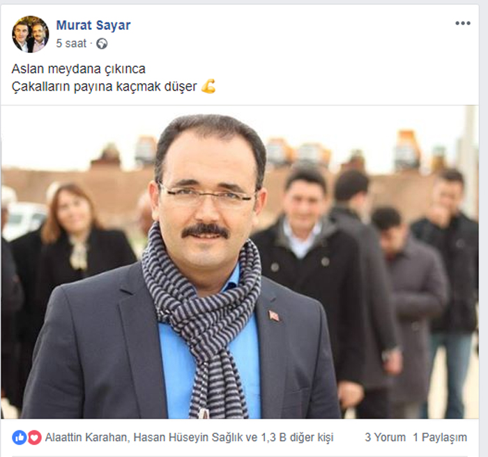 UTAŞ çalışanı trolün “Aslan meydana çıkınca çakallara kaçmak düşer” şeklinde önde Cahan’ın arkada ise tptpmontajlı bir şekilde bir belediye meclis üyesinin fotosunun konması ise tepkilere neden oldu. Bu paylaşımla Belediye başkan aday aylarına ve özellikle meclis üyesi başkan aday adayına gönderme yapıldığı iddia ediliyor.