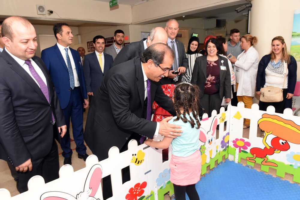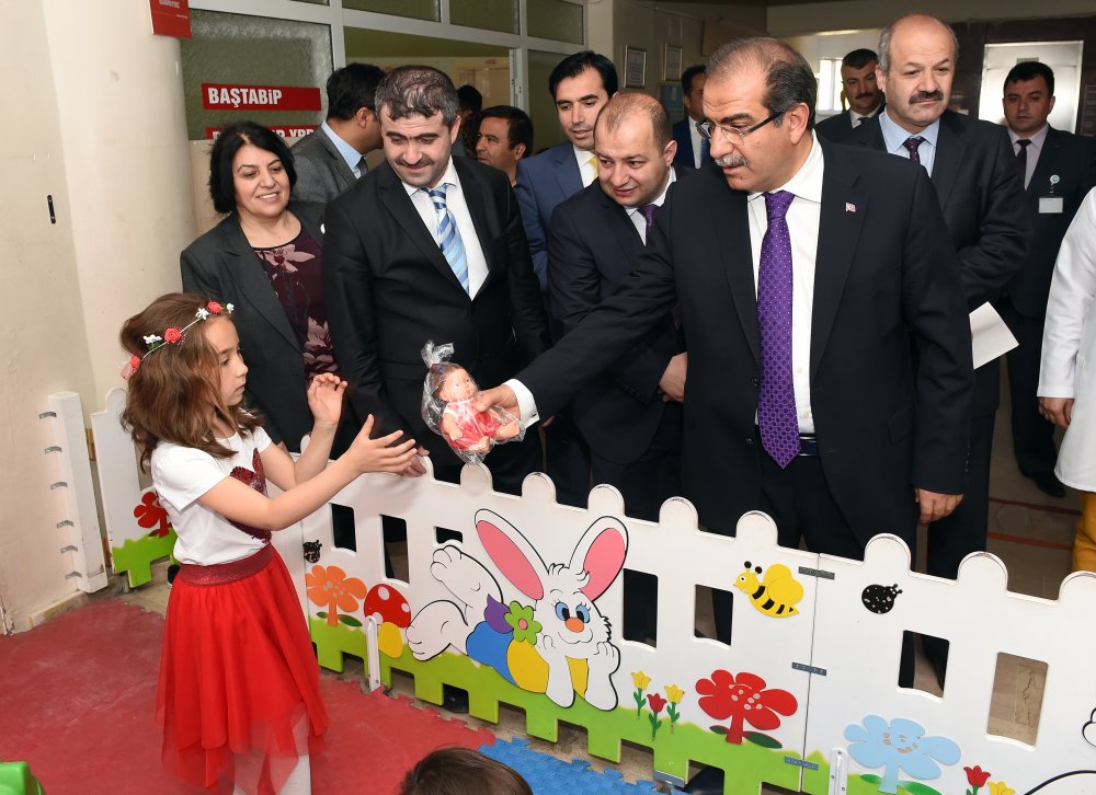 İncelemeleri sırasında poliklinik içerisinde oluşturulan oyun parkında çocuklarla yakından ilgilenen ve aileleriyle sohbet eden Vali Salim Demir, çocuklara oyuncak hediye etti.