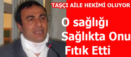 Göreve geldiği ilk günden itibaren sağlık camiasını inim inim inleten Sağlık Müdürü Ali TAŞÇı deyim yerindeyse sağlık teşkilatını fıtık etti ama kendisi de boyun fığı geçiriyor. Dün yapılan İl Genel Meclisi Toplantısında boyunlukla Aile Hekimliği konusunda bilgi veren Ali TAŞÇI Aile hekimi olmak başvuruda bulundu. Eğer aile hekimliği onaylanırsa Ali TAŞÇI Sağlık Müdürlüğünden ayrılmak zorunda kalacak. Sonucun Temmuz ayında belli olacağı ve ozaman kadar da TAŞÇI’nın Sağlık Müdürlüğü görevini yürüteceği belirtiliyor.