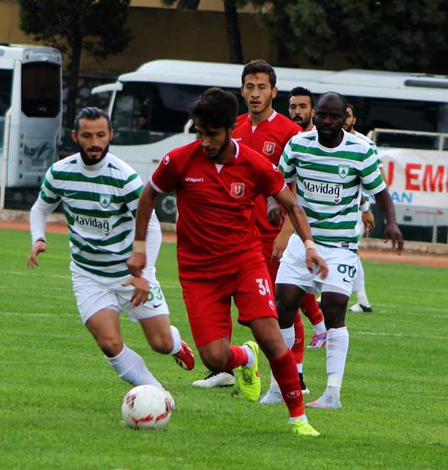 Dk.5 - Uşak Belediye ceza alanında Bilal’in topuk pasında kaleci ile karşı karşıya kalan Kemal Akbaba sert vurdu, kaleye giden topu Uşakspor kalecisi Murat son anda kornere çeldi.